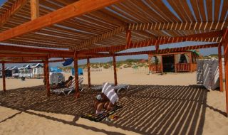 Оборудованный навесами и лежаками песчаный поселковый пляж находится в 600 метрах от отеля.